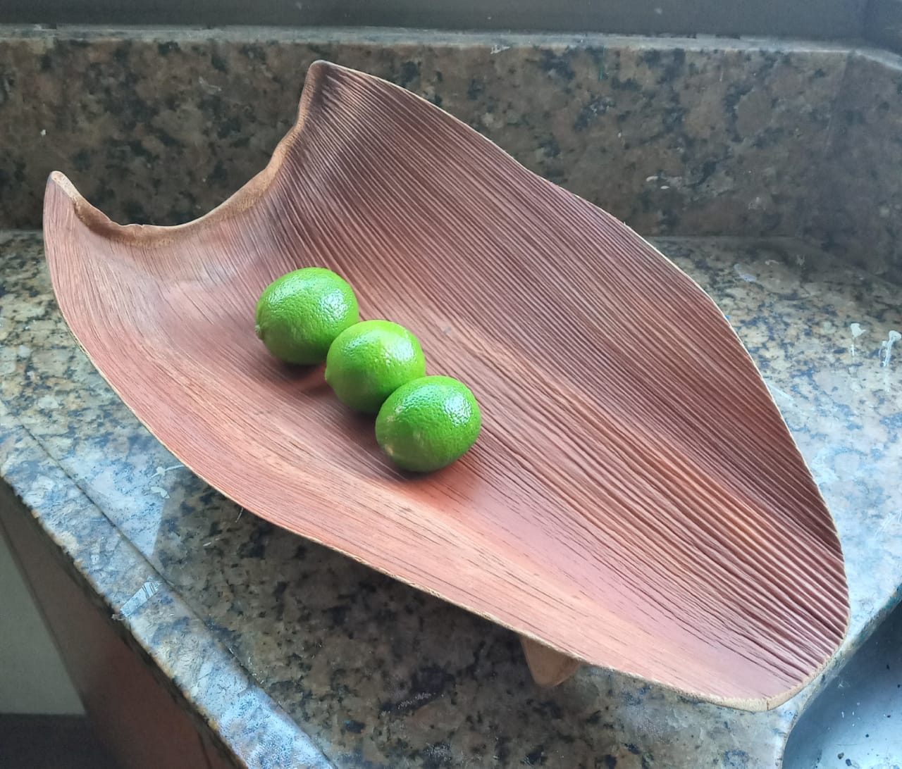 Na folha de palmeira recolhida da rua visualizei uma cesta, uma gamela, uma bandeja ou algo parecido.